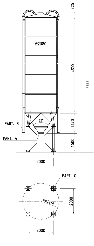 БАЗОВАЯ КОМПЛЕКТАЦИЯ СТАЛЬНОГО СИЛОСА SM 23